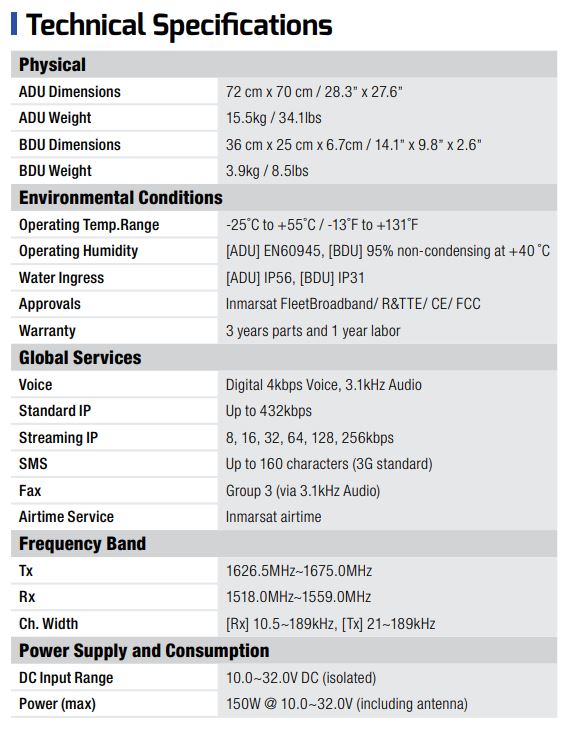 Intellian FBB 500 Specs